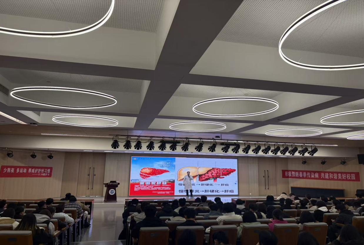 春季是流感、水痘、腮腺炎及诺如病毒感染的高发期。李主任结合临床案例,详细解析了各类疾病的典型症状与传播特点及预防措施。他强调流感通过飞沫传播,易引发高热、全身酸痛,建议学生及时接种疫苗,避免聚集性活动。水痘与腮腺炎均通过呼吸道传播,水痘患者需隔离至皮疹结痂,腮腺炎患者应避免酸性饮食以缓解疼痛。诺如病毒以粪-口途径传播为主,强调“勤洗手、不生食、及时消毒”三点防控要点。3月18日是“全国爱肝日”,李主任以病毒性肝炎为切入点,强调其作为我国重大公共卫生问题的严峻性,针对大学生群体,他重点讲解了乙肝的传播途径(如血液、母婴和性接触)及预防措施,呼吁适龄学生主动接种疫苗、定期检测抗体,并纠正“共餐会传染肝炎”的误区。