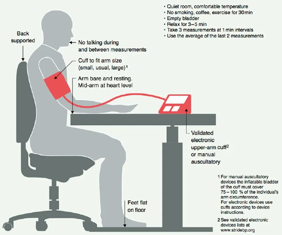 ③ 设备:使用经过认证的上臂式袖带电子血压计或经过校准的听诊式血压计。
